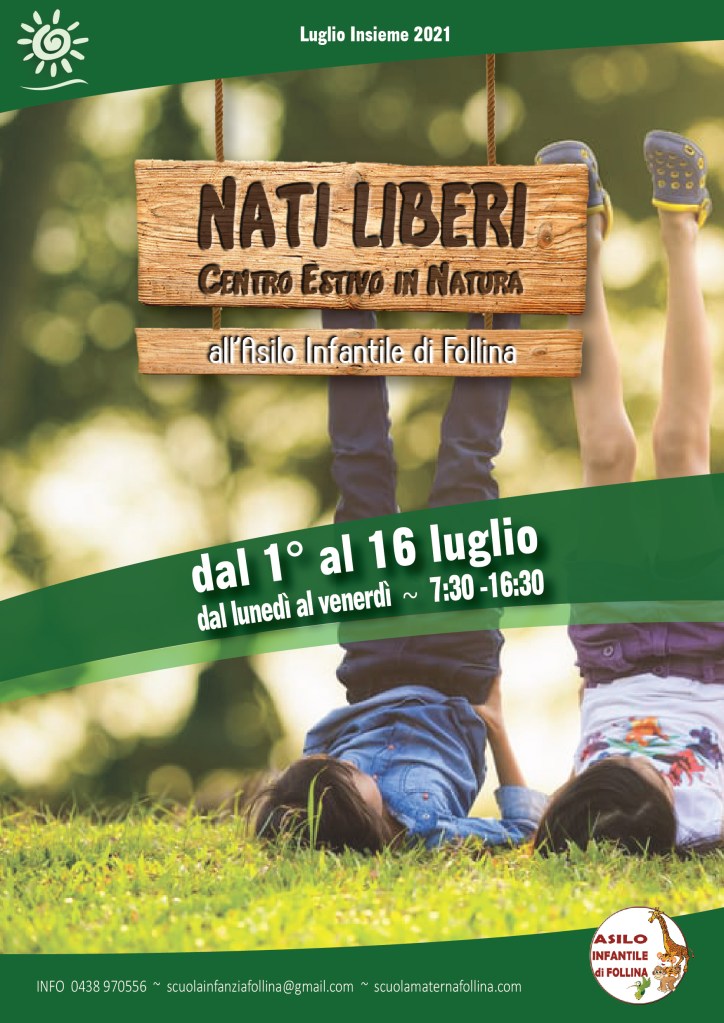 Torna l’appuntamento del Luglio Insieme, alla scuola dell’Infanzia di Follina, per accompagnare i bambini da 3 a 11 anni, dal lunedì al venerdì, dalle 7:30 alle 16:30. Scarica il volantino con tutte le informazioni utili. Per l’iscrizione compila il form https://forms.gle/mabUwihryptL6btc7
