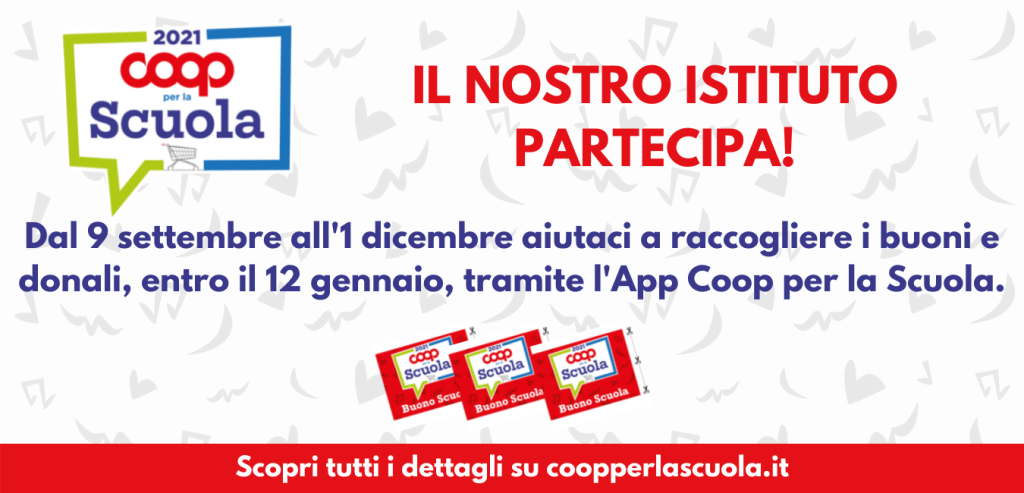 La terza edizione nazionale dell’iniziativa promossa da Coop a sostegno di studenti, famiglie e insegnanti: grazie ai buoni Coop per la Scuola, le scuole del territorio potranno richiedere, in forma totalmente gratuita, materiali didattici, informatici e tanti altri articoli utili alla didattica.